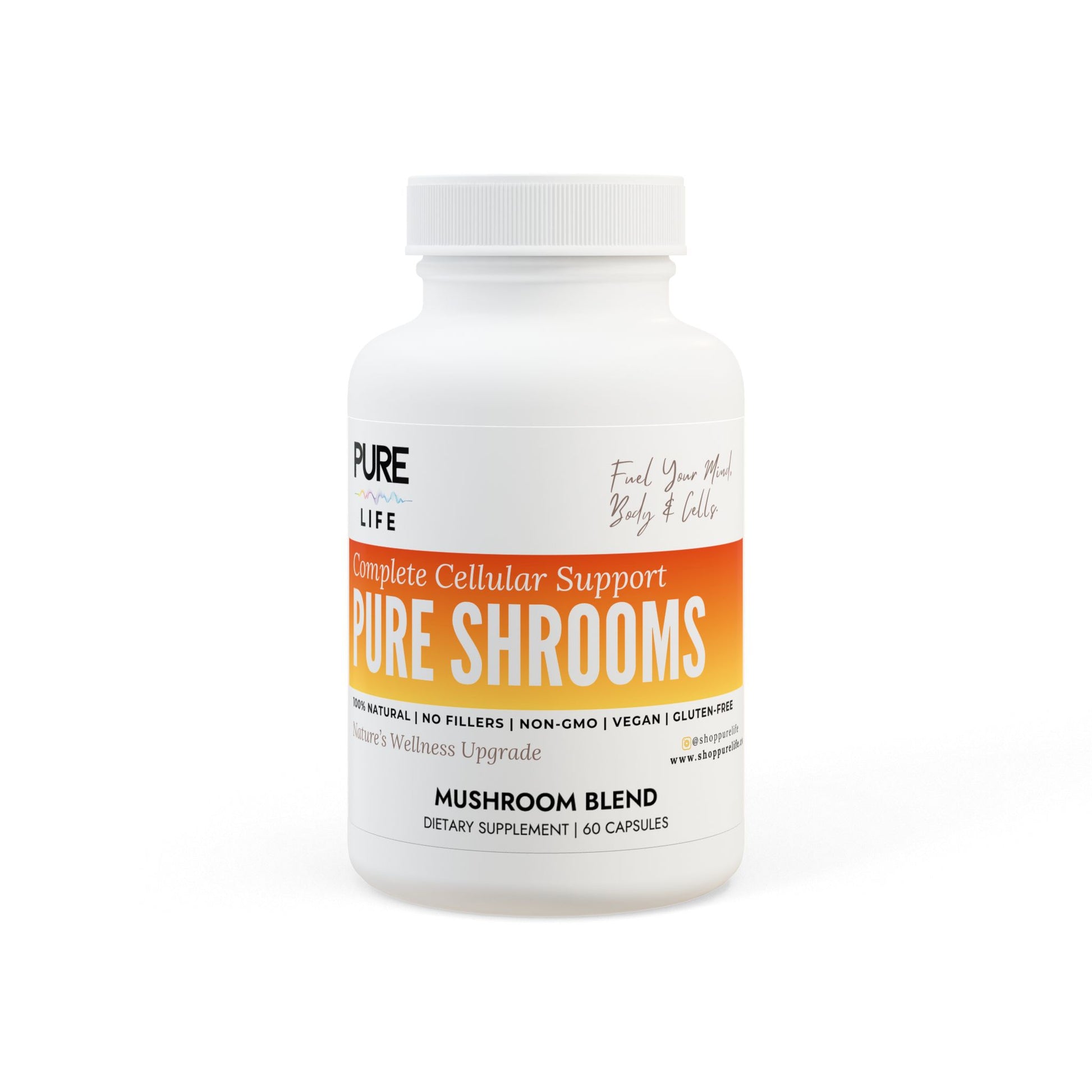 Mushrooms are Earth's original superfood—and now you can experience their full-spectrum benefits in one easy-to-take capsule. Pure Shrooms delivers a potent blend of functional mushrooms that support your immune system, sharpen focus, reduce inflammation, and promote long-term cellular regeneration. From Lion’s Mane to Reishi, these powerful plants work together to elevate your mind and body—naturally.